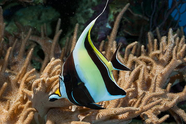 Halfterfische ähneln in Aussehen und Körperform den „echten“ Wimpelfischen (Heniochus sp.).
