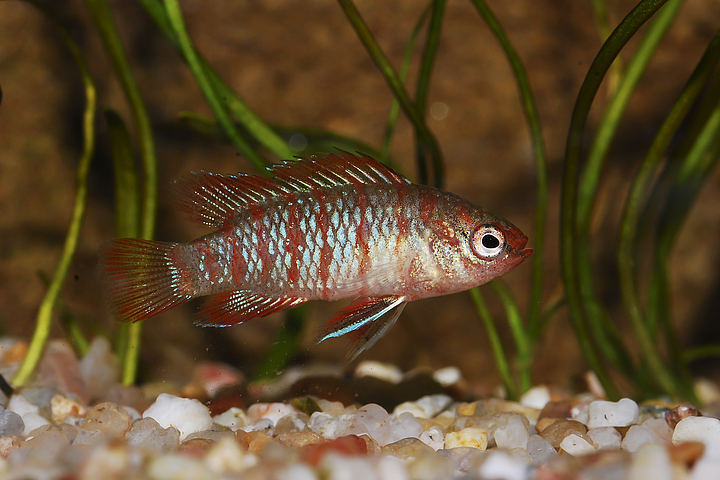 Für ein Pärchen oder einen Harem Zwergblaubarsche eignet sich bereits ein Aquarium mit 60 cm Kantenlänge, für die etwas größeren Blaubarsche mit mindestens 80 cm Kantenlänge.