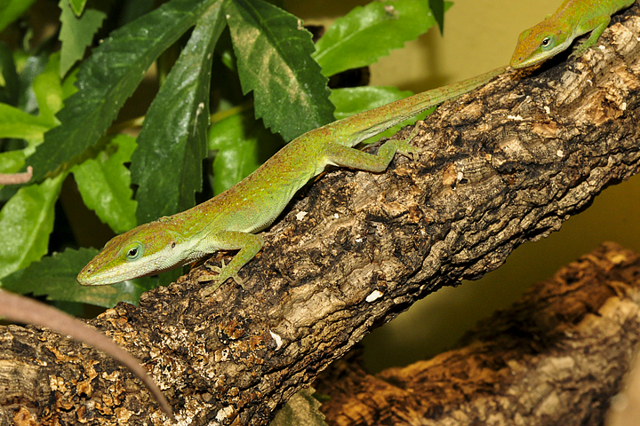 Anolis sind sehr bewegungsaktiv, können extrem gut klettern und springen. Ein Terrarium für die genannten Arten sollte daher mindestens die Maße 80 x 50 x 80 cm (Länge x Breite x Höhe), besser 120 x 50 x 100 cm aufweisen.