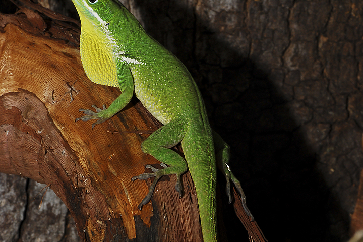 Als Grundbeleuchtung eignen sich Leuchtstoffröhren; die Beleuchtungsdauer sollte 10 - 14 Stunden betragen. Anolis benötigen viel UV-Licht. Da die Leuchtmittel mit der Zeit immer weniger UV-Strahlung abgeben (s. Herstellerhinweise), müssen diese regelmäßig ausgetauscht werden. Wichtig: Die Beleuchtung muss unerreichbar für die Anolis angebracht sein oder durch einen Gitterkorb gesichert werden (Verbrennungsgefahr!).