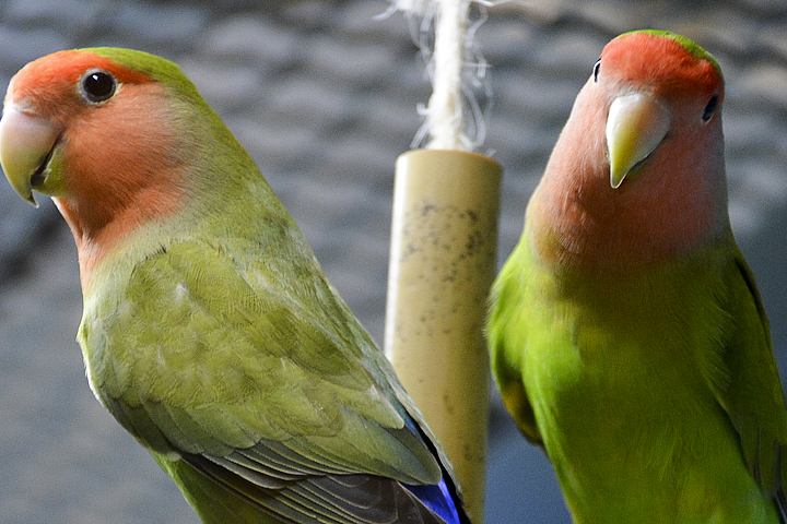 Da Agaporniden kräftige Schnäbel besitzen und gerne nagen, müssen Vogelheim und Voliere entsprechend stabil sein. Die Gitter dürfen nicht lackiert sein, sondern müssen eine stabile Beschichtung aufweisen. Ideal ist eine Querverdrahtung, da sie von den Tieren gerne zum Klettern genutzt wird.